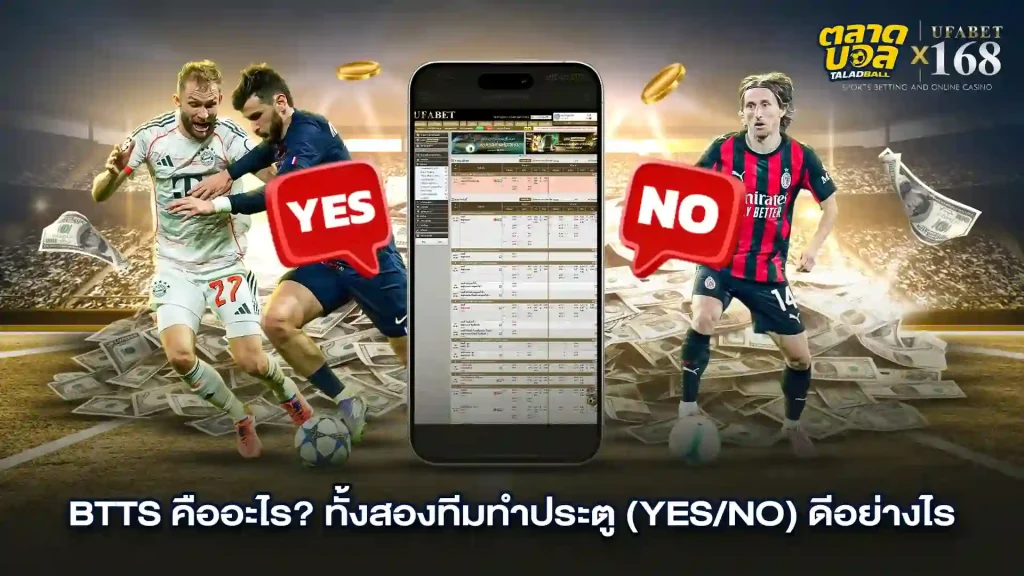 BTTS คืออะไรในเชิงเทคนิคแล้วมีตัวเลือกง่ายๆ แค่ 2 ทาง: YES (ทั้งสองทีมทำประตู) และ NO (อย่างน้อย 1 ทีมไม่ได้ประตู) โดยราคาบอลและราคาต่อรองบอลจะแตกต่างกันตามความน่าจะเป็นของแต่ละคู่